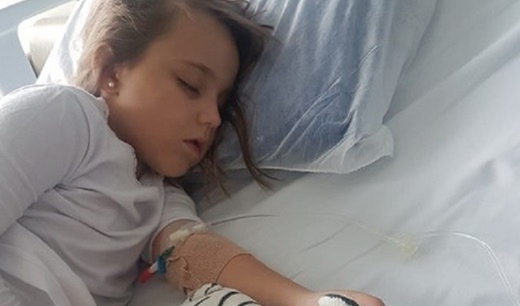 A pequena Lara precisou ficar internada para fazer o tratamento depois de ficar doente por brincar demais.