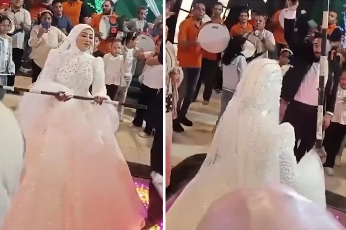 O noivo estava feliz, dançando, quando caiu subitamente, para surpresa de todos.