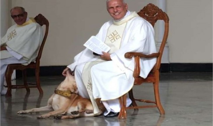 Os fiéis ficaram surpresos quando viram o cachorro entrar pela igreja e se aproximar do sacerdote, que teve uma atitude inesperada.