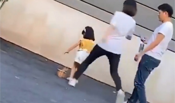 A mulher foi flagrada justamente no momento em que deu um chute na filha, causando revolta entre os internautas.
