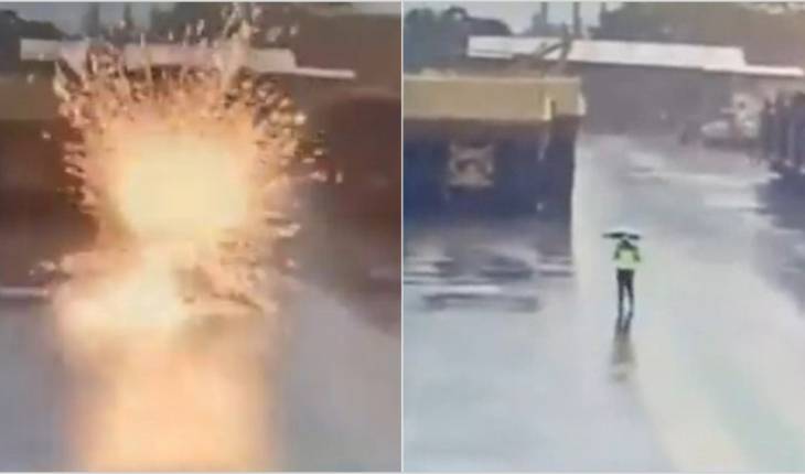 Após receber a descarga elétrica, o sujeito foi socorrido pelos colegas de trabalho.