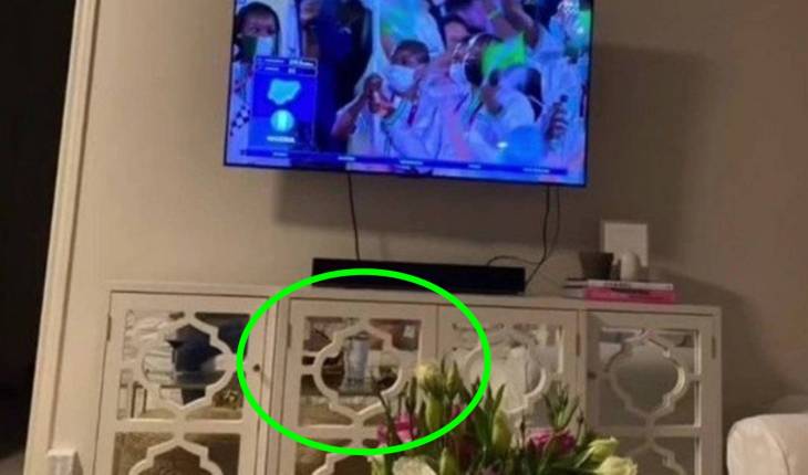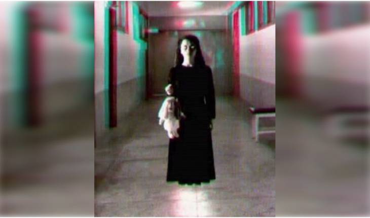 Ela aparece com um vestido preto, segurando uma boneca e essa imagem é compartilhada em vários países.