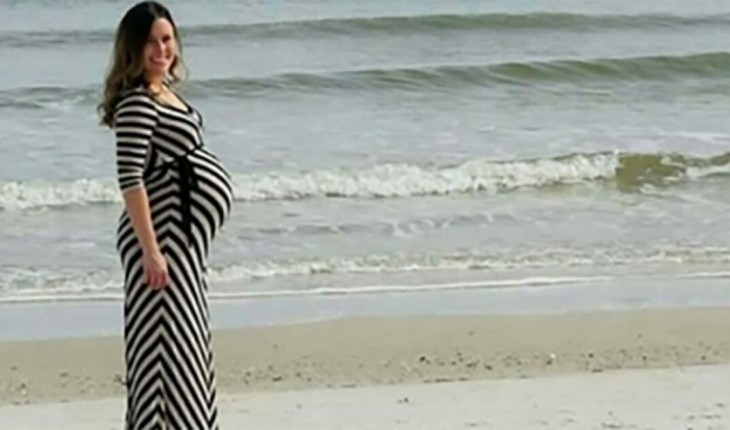 Homem se surpreende com o que aparece ao lado de sua esposa grávida em foto na praia