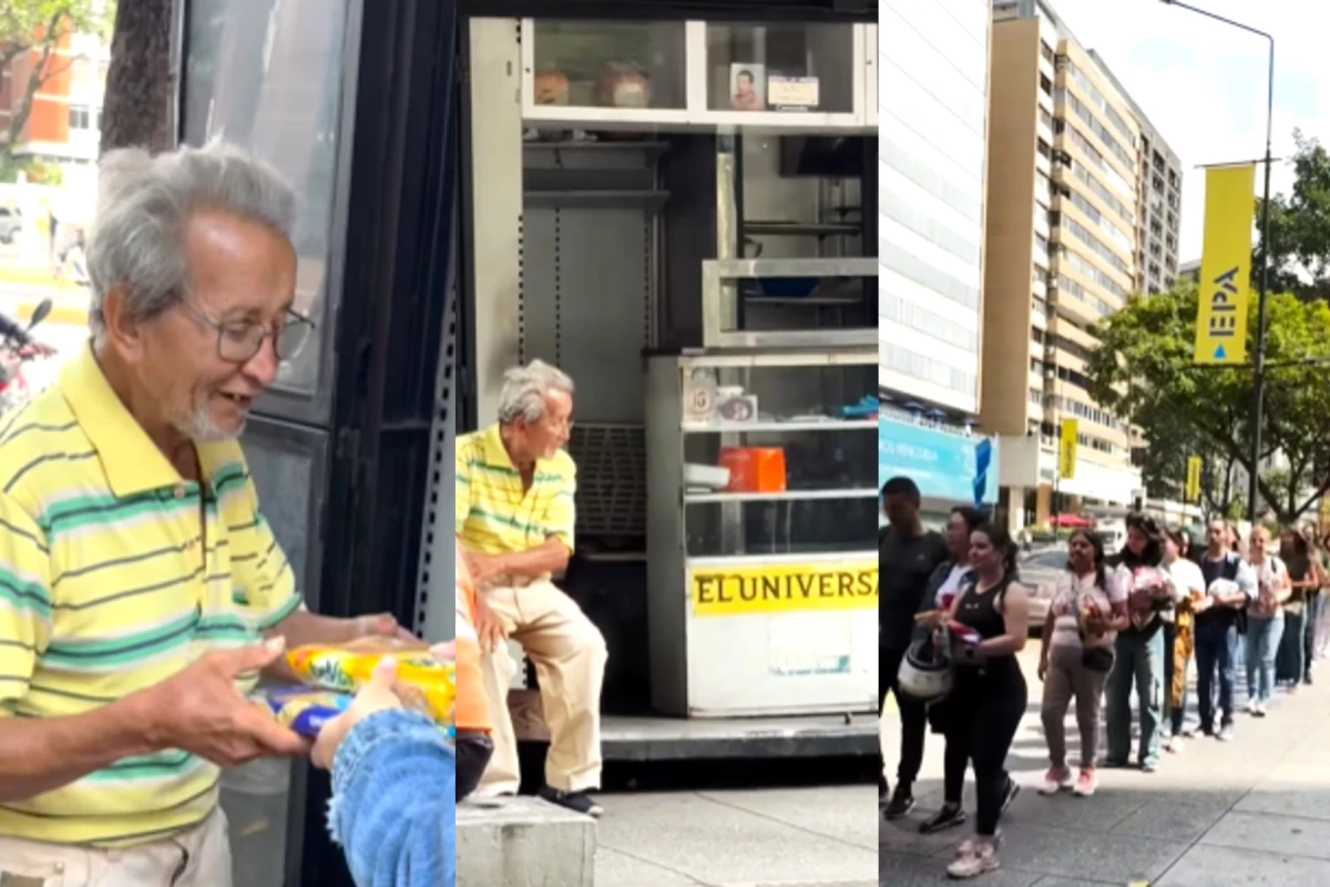 Voluntários formaram uma fila e cada pessoa doou uma mercadoria para o senhor Pablo vender em sua banca.