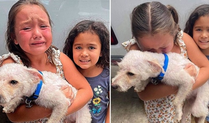 Menina sofreu por dois meses sem notícias de seu cão e não segurou a emoção ao tê-lo de volta em seus braços.