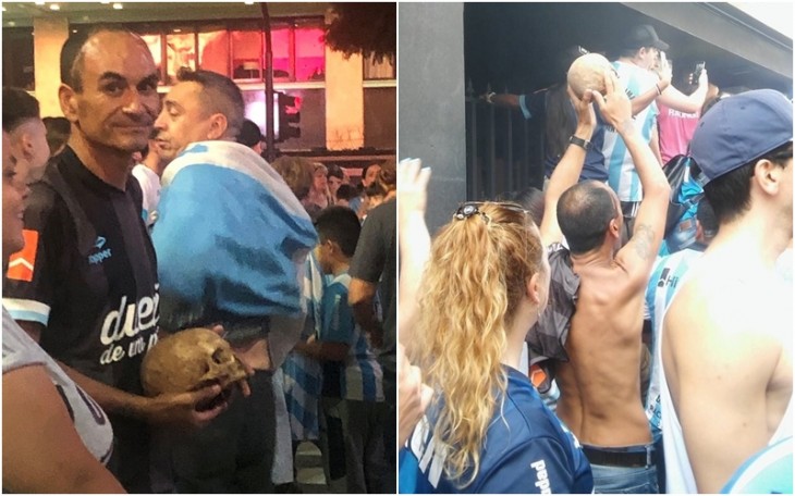 Gabriel Aranda foi às ruas de Buenos Aires comemorar título nacional com crânio do avô.