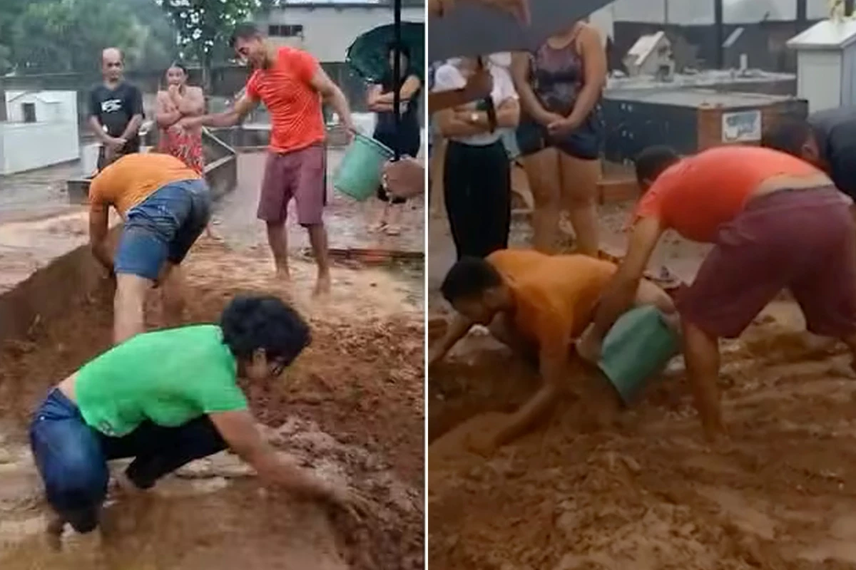 Funcionário não estava na hora do sepultamento e familiares tiveram que cavar a cova debaixo de chuva.