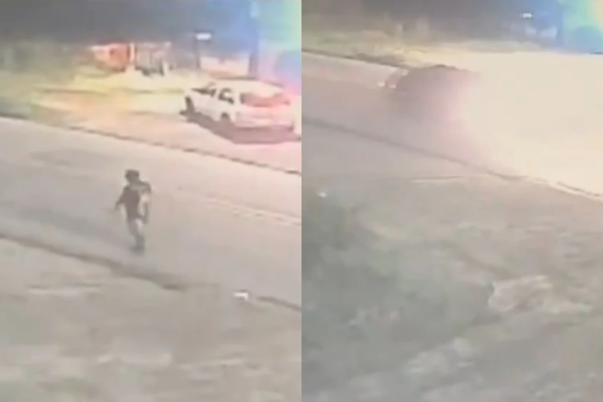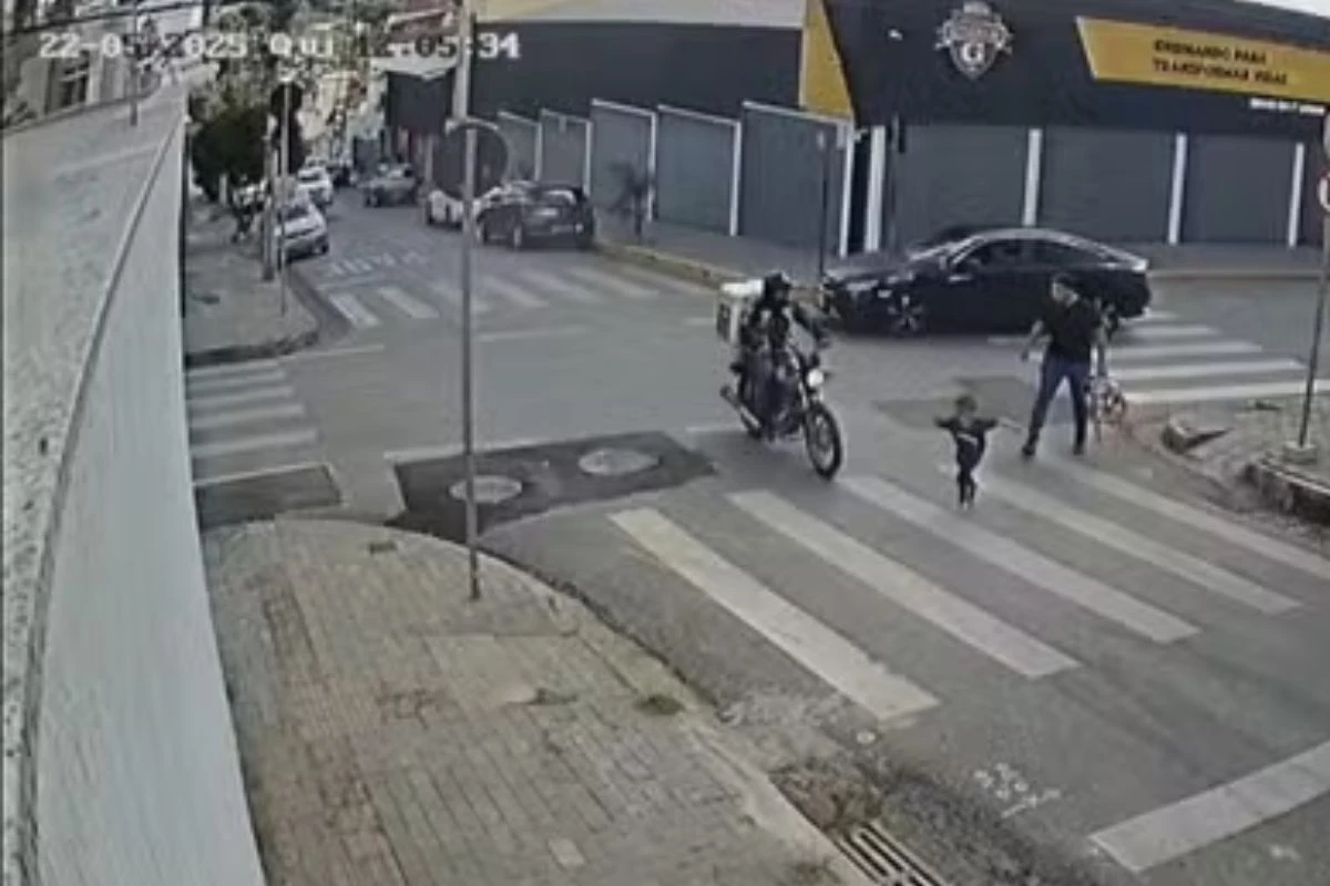 Câmeras de segurança flagaram o momento em que Osvanir Lopes Simões é atropelado em Contagem, na Região Metropolitana de Belo Horizonte, a capital de Minas Gerais.