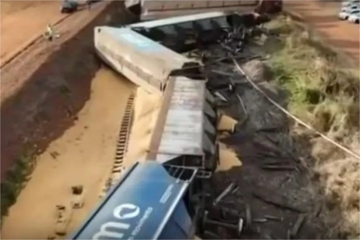 Um caminhão que transportava cana-de-açúcar foi atingido pelo trem que transportava milho.
