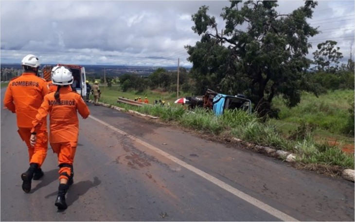 Uma mulher de 41 anos morreu no acidente com ônibus que transportava garis, a vítima foi socorrida, mas não resistiu.