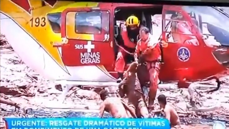 TV Globo divulga vídeo de resgate feito por esposo à sua companheira em casa soterrada por rejeitos de Brumadinho, Minas.