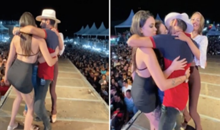 Após beijar fã e ser acusado de assédio, agora cantor beija três mulheres de uma única só vez.