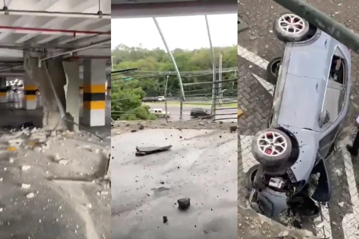Acidente mobilizou equipes de resgate do shopping para socorrer a condutora do veículo.