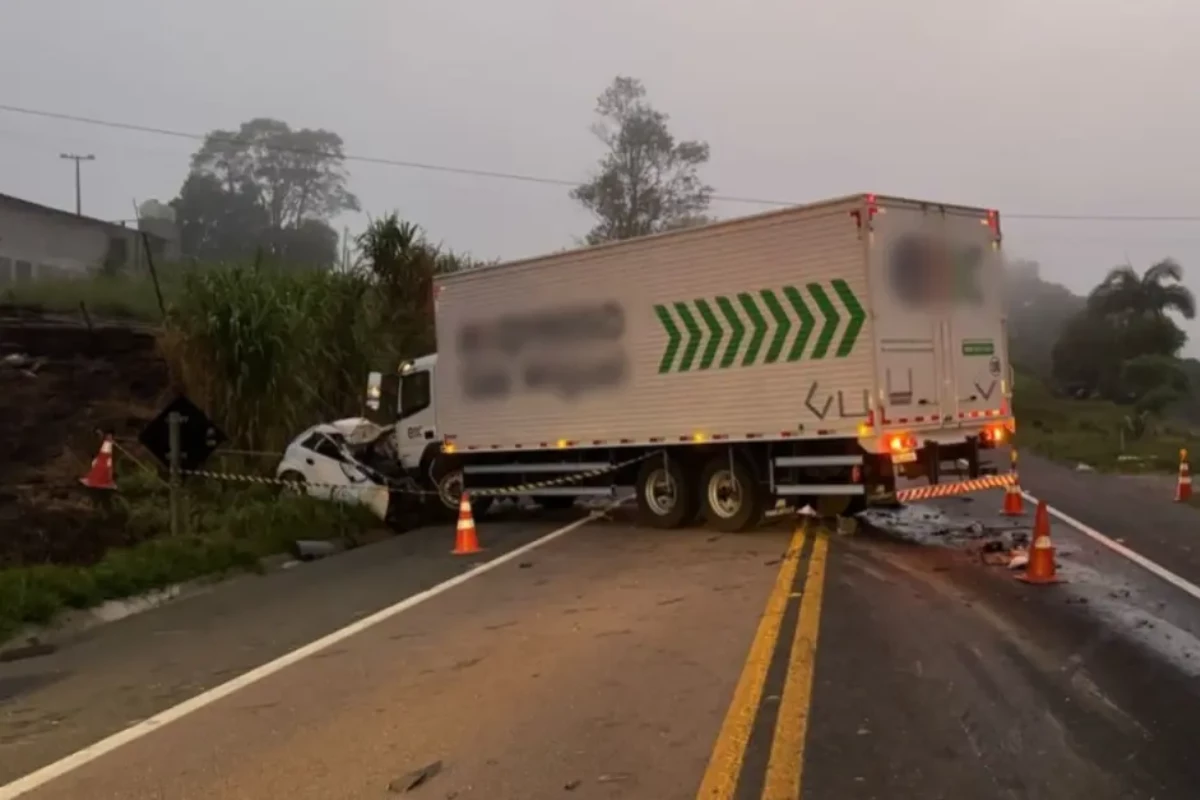 Acidente entre caminhão e carro resultou em vítima fatal na manhã desta terça-feira (11).