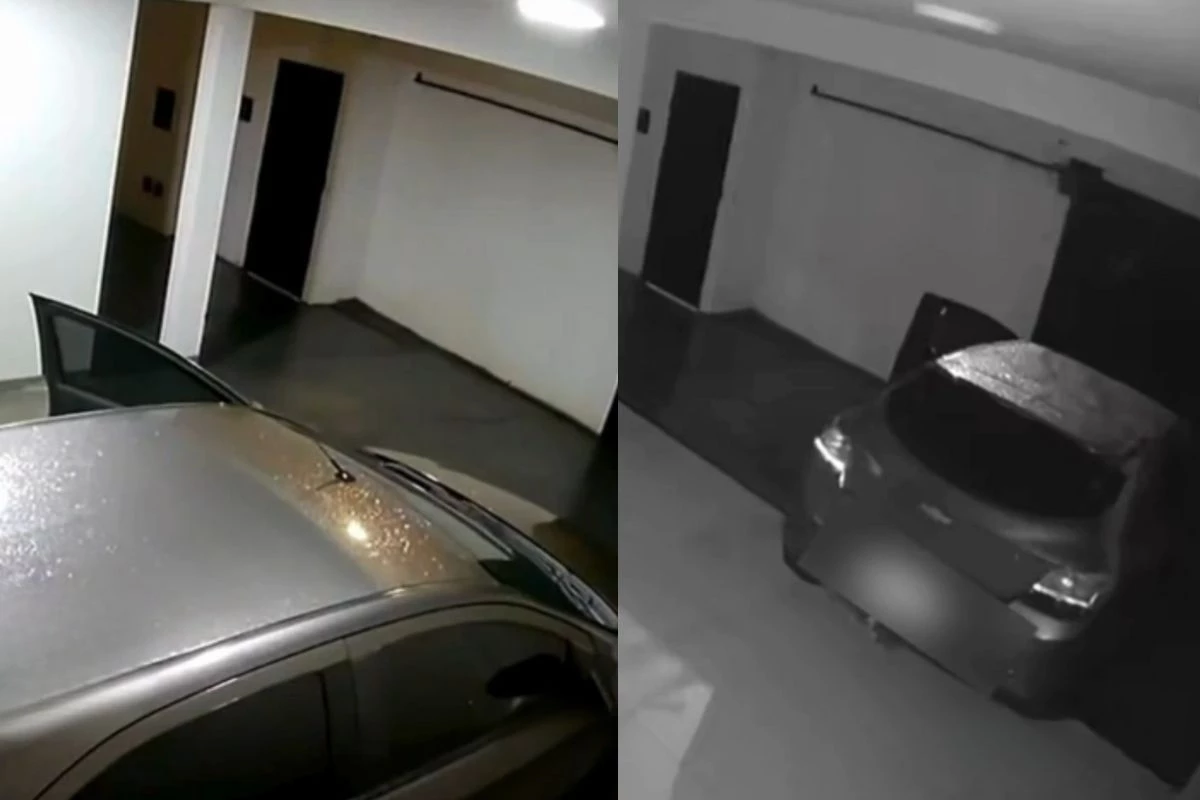 Dona de carro se assustou ao ver veículo andando sozinho na garagem e derrubar portão.