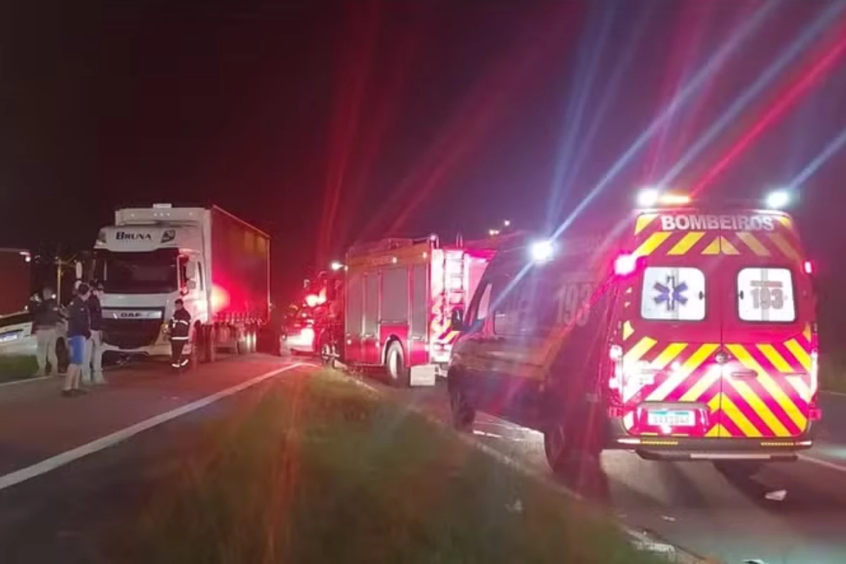 Colisão entre caminhão e dois carros resultou em vítimas na rodovia SP-280.