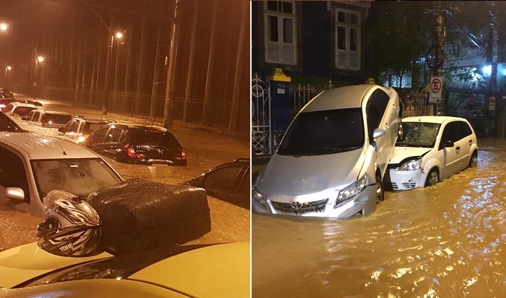 Chuva forte deixa Rio de Janeiro debaixo d’água, arrasta carros e derruba árvores.