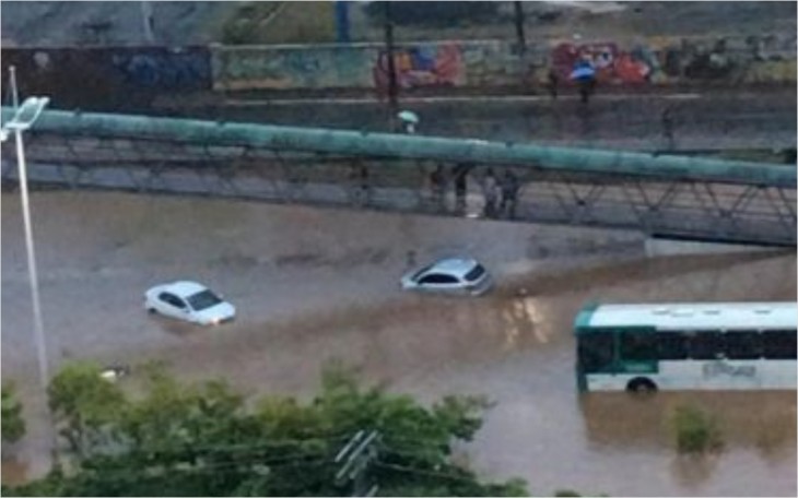 Várias ruas e avenida foram inundadas, motoristas e passageiros tiveram que ser resgatados pelos bombeiros.