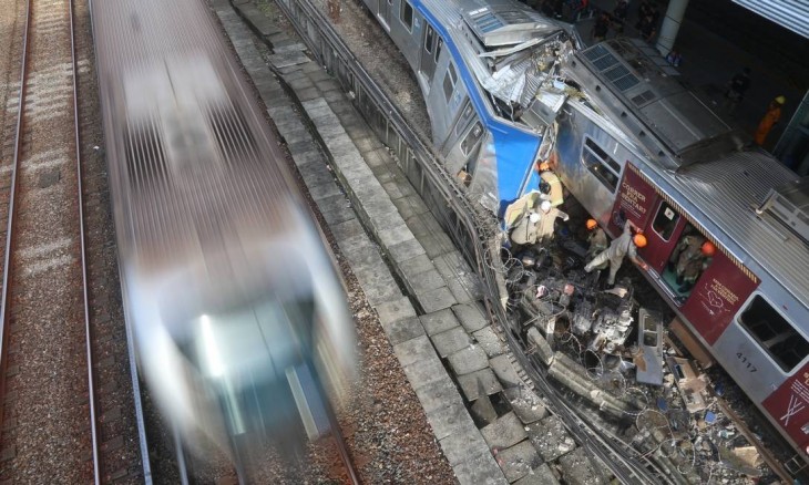Várias pessoas filmam o estado em que ficaram os trens após se colidirem na manhã desta quarta-feira (27).