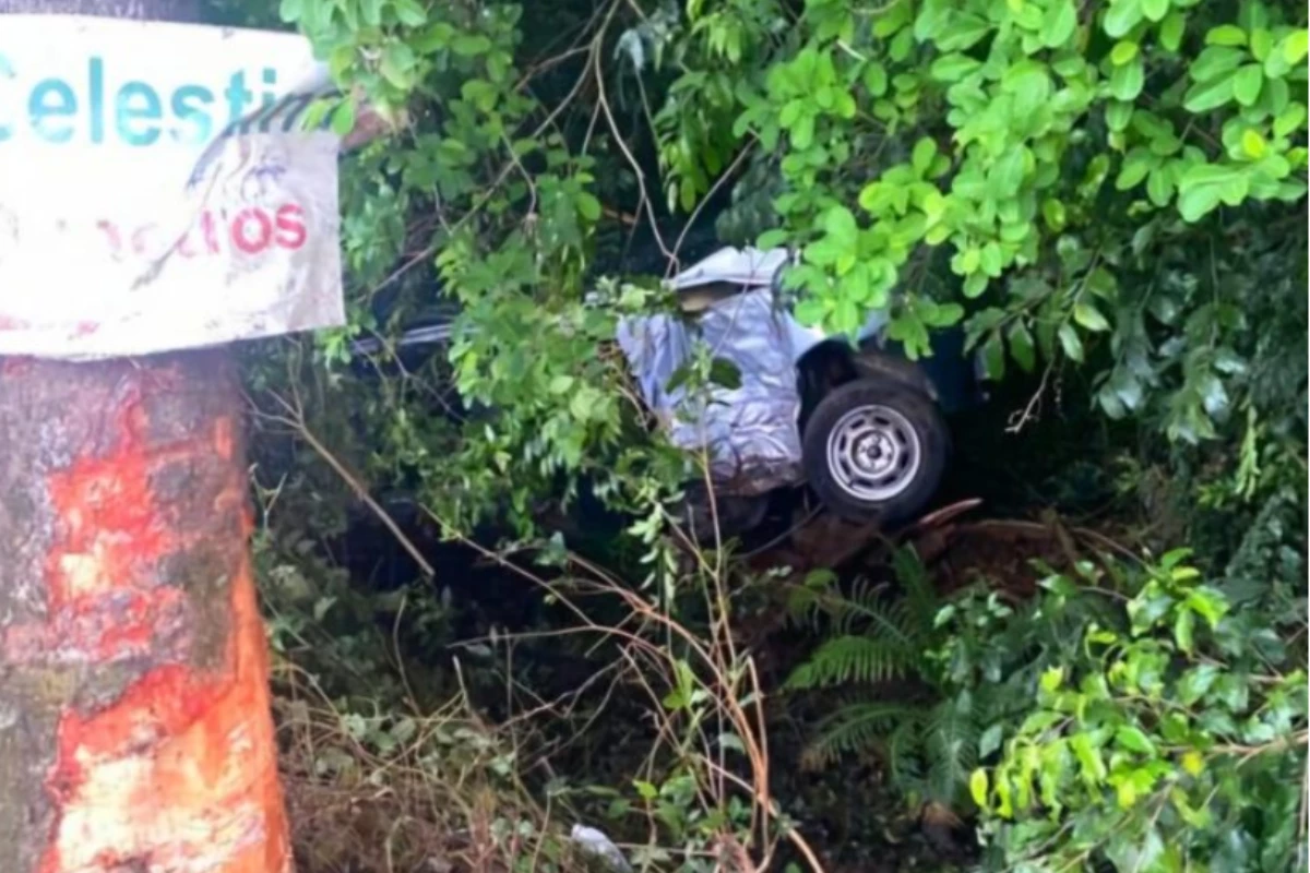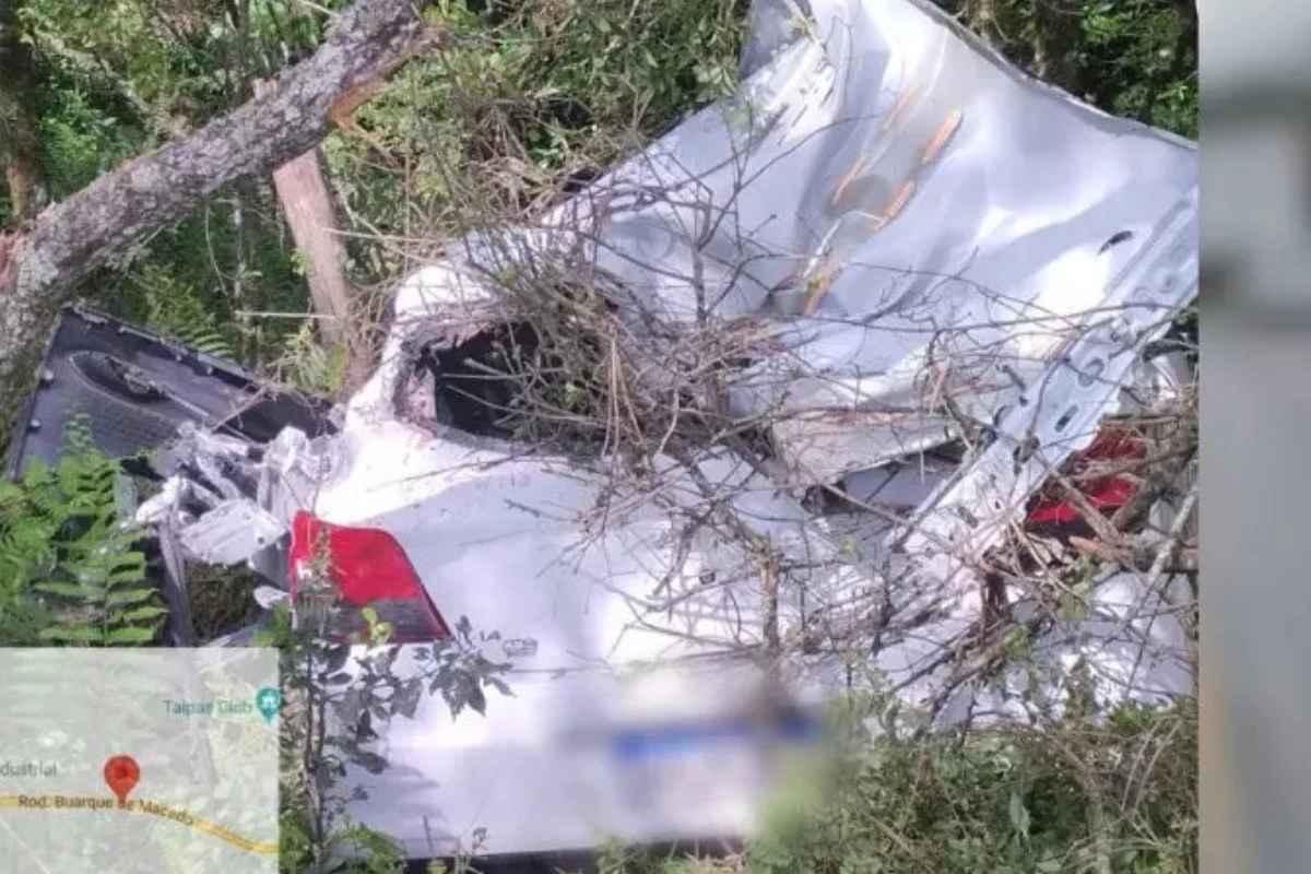 O carro colidiu com uma árvore e caiu em uma ribanceira; confira os detalhes a seguir.
