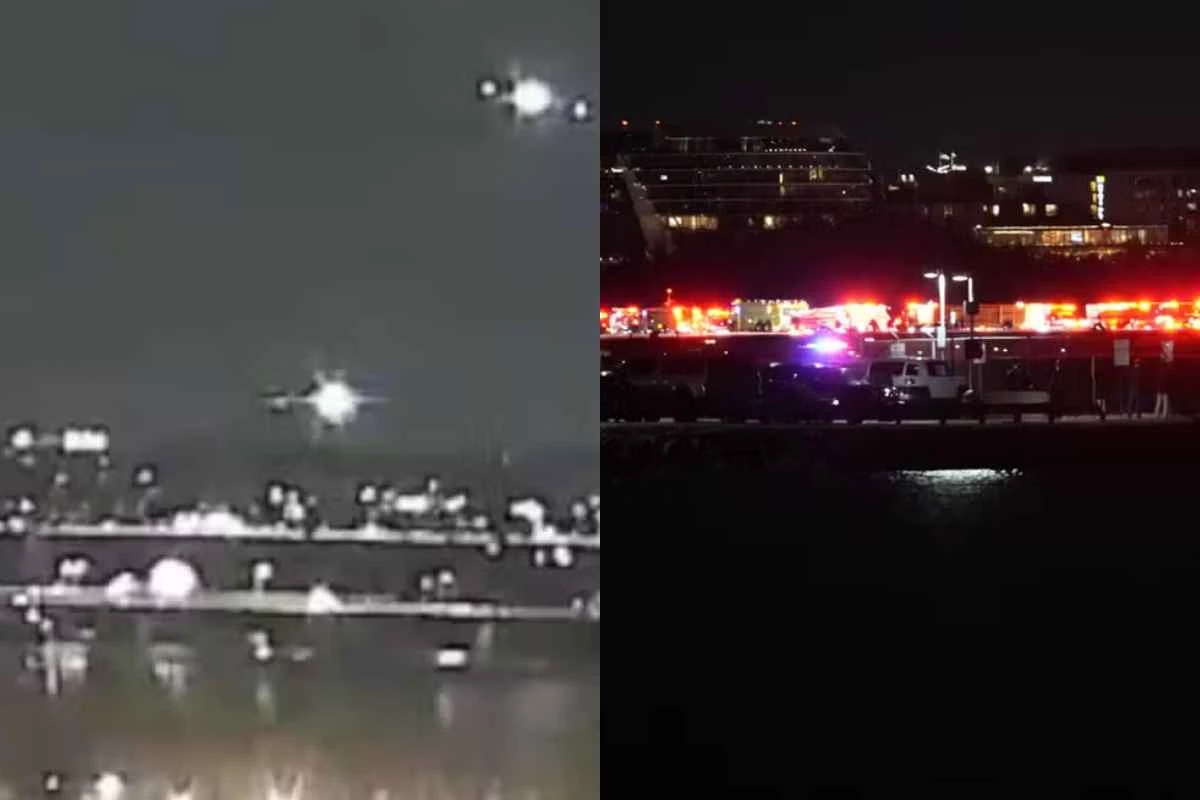 Um vídeo mostra o momento exato em que o avião comercial colidiu com o helicóptero militar; autoridades estão investigando a causa do acidente.