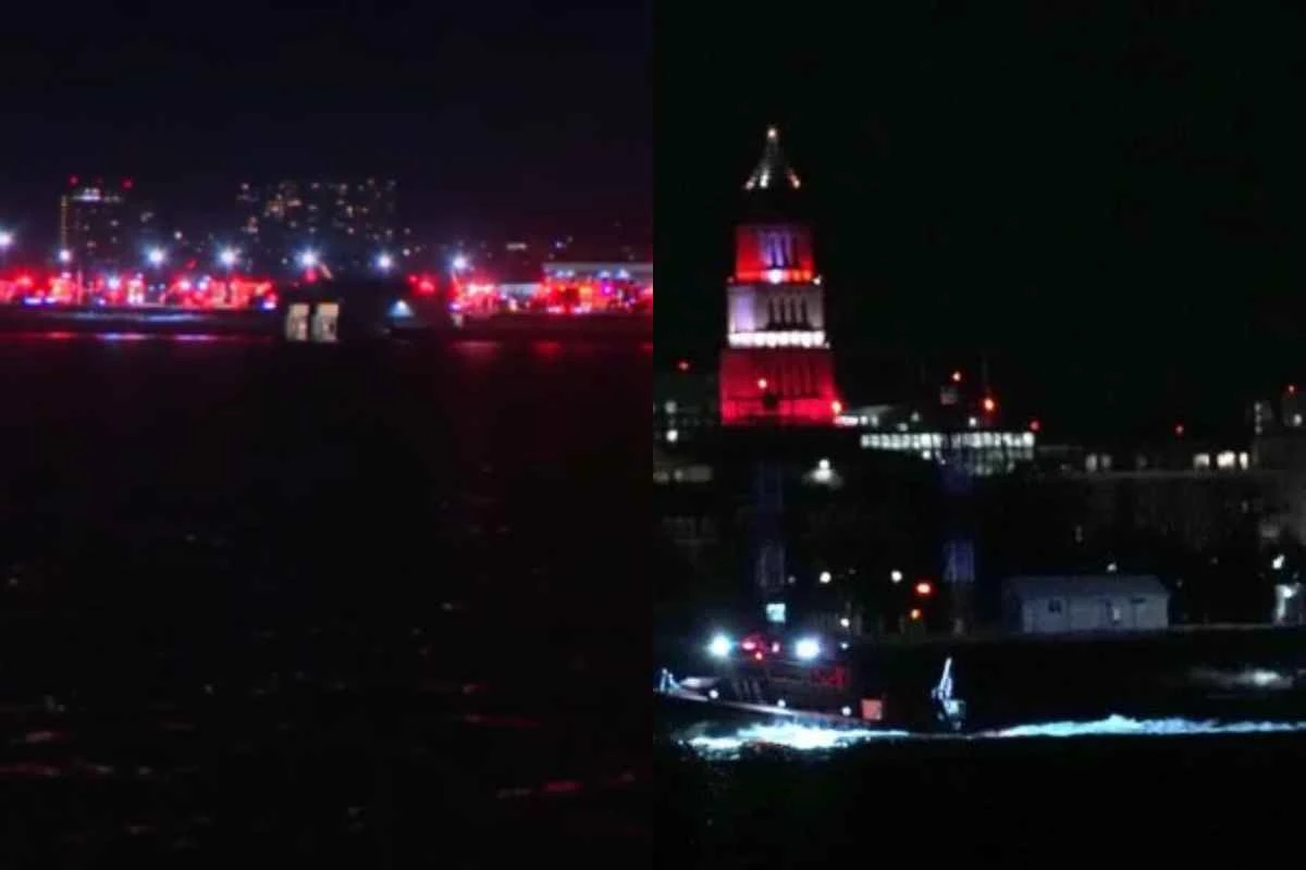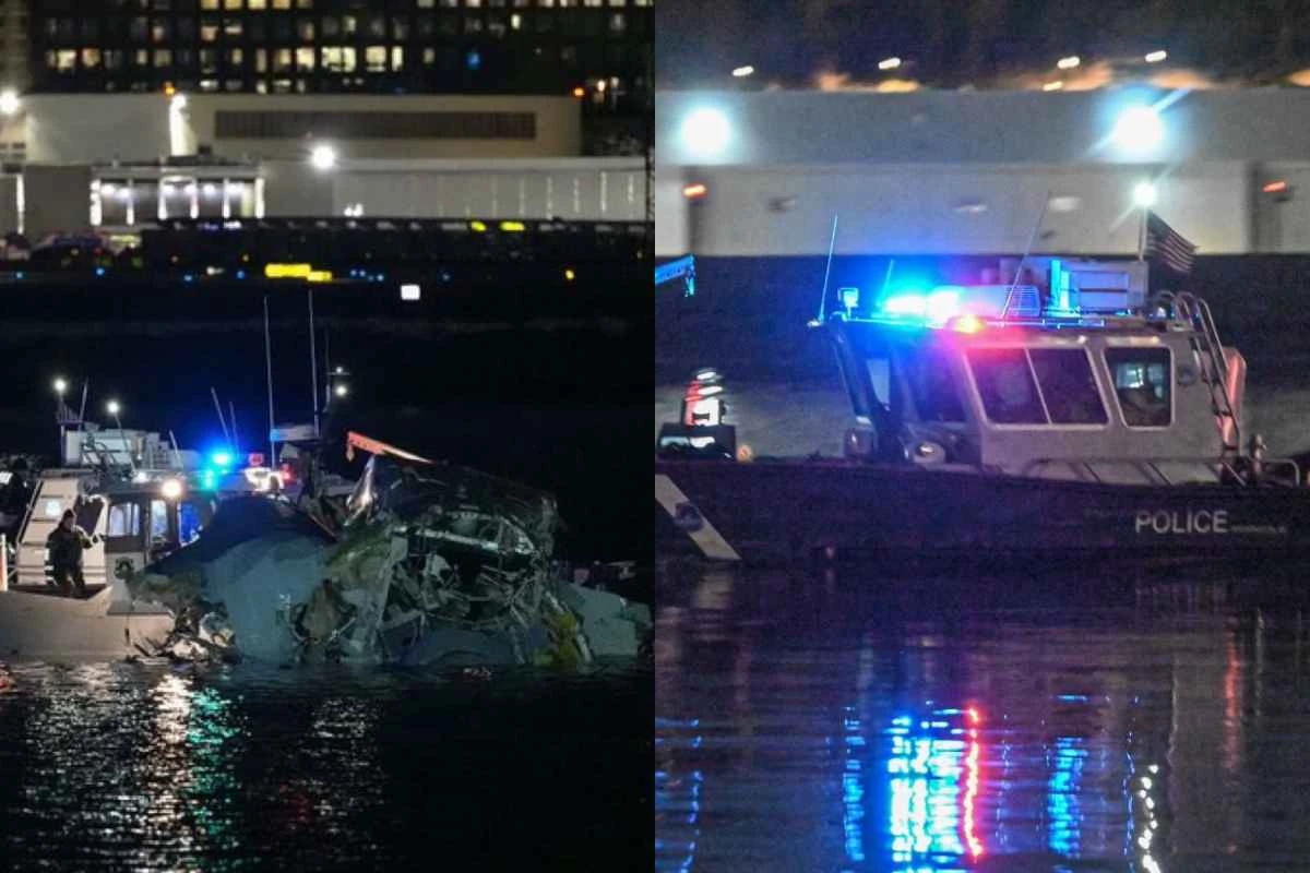O avião comercial, que transportava 64 pessoas, colidiu com um helicóptero com 3 pessoas a bordo; equipes de resgate procuram vítimas no rio.