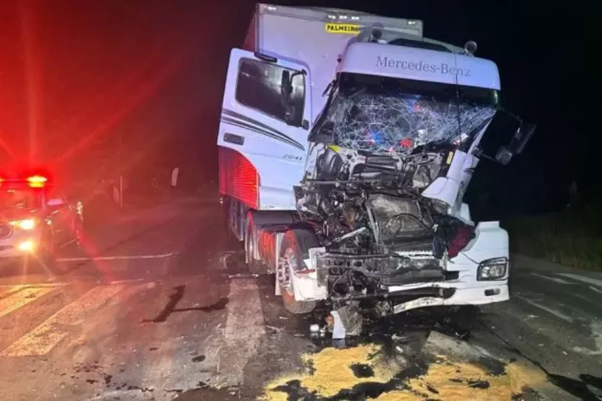 Motorista opta por colidir com caminhão para evitar atingir veículo de família na rodovia.