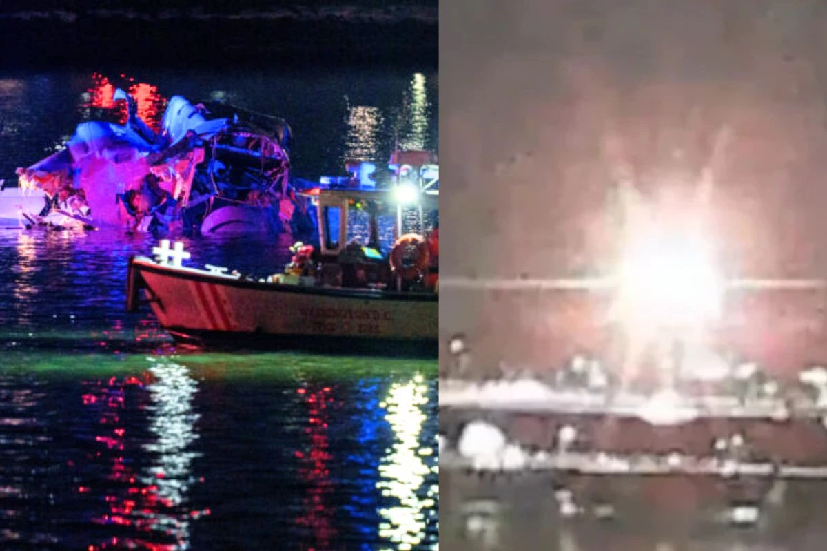 Avião com 64 pessoas a bordo caiu depois de colidir com um helicóptero militar dos Estados Unidos.