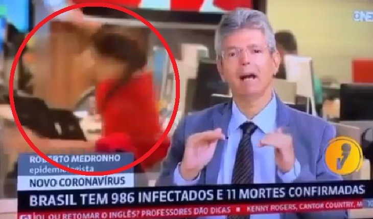 Thais Fascina escorregou na sala de redação da GloboNews, cenário que era o fundo do telejornal Edição das 10h.