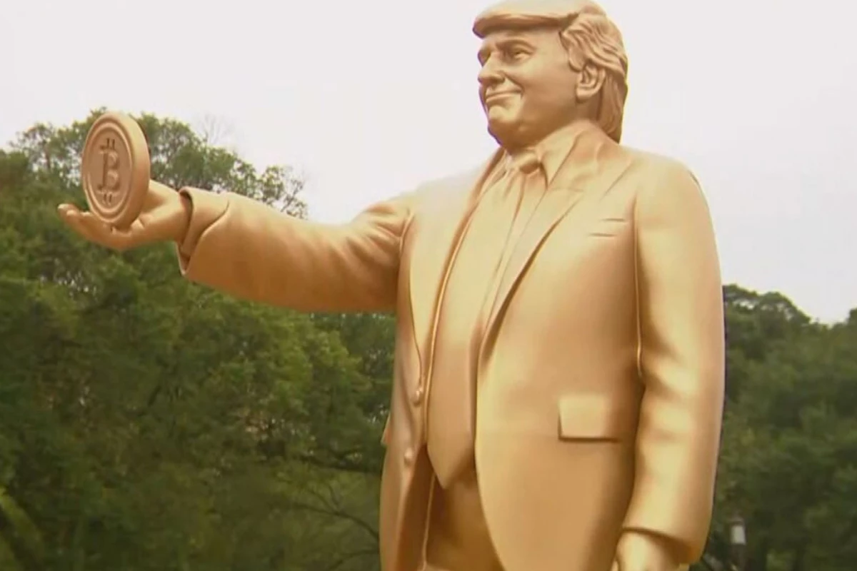 Estátua gigante de Trump segurando Bitcoin é erguida em frente ao Capitólio
