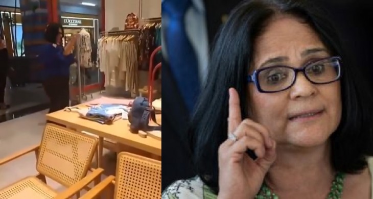 Ministra de Bolsonaro causou confusão em shopping ao passear vestida de azul. Vendedor provocou a política.