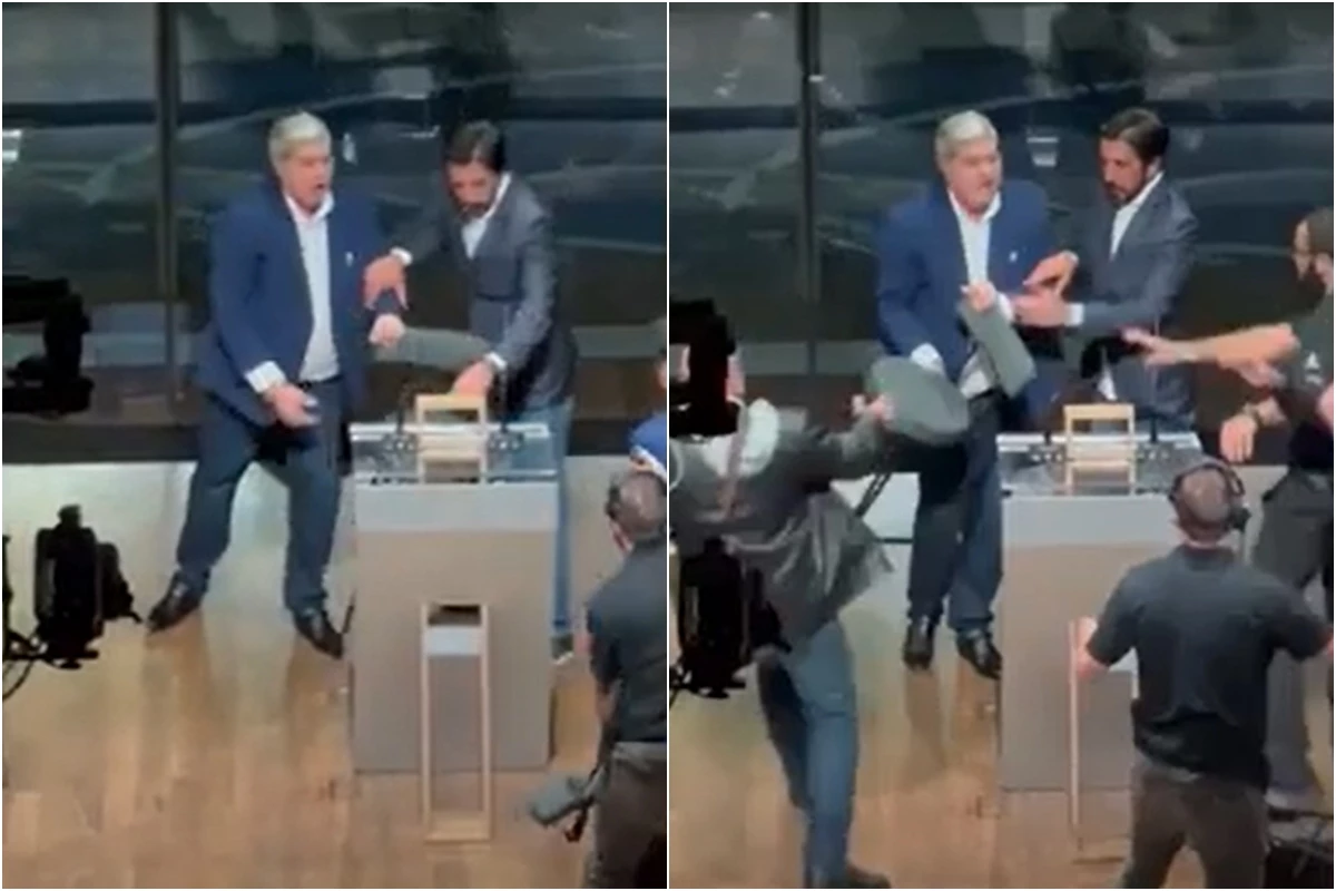 Datena agrediu concorrente com uma primeira cadeirada e tentou novamente logo depois.