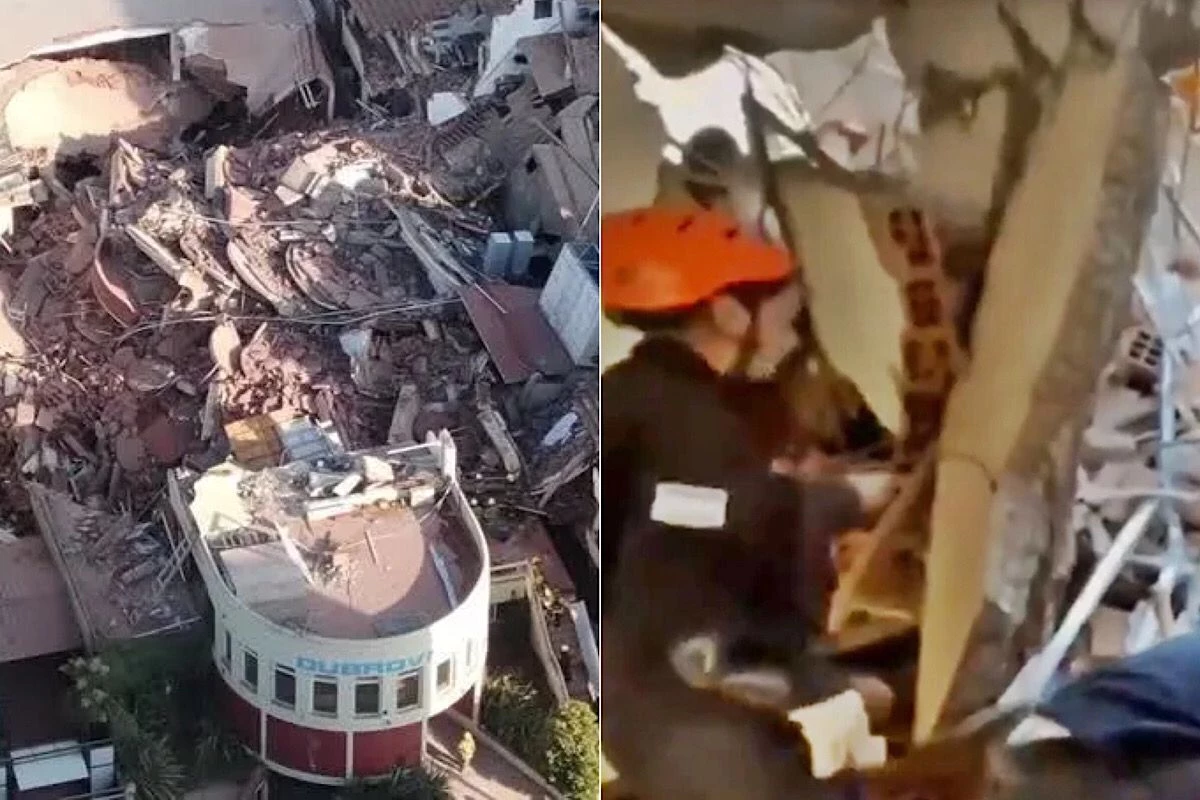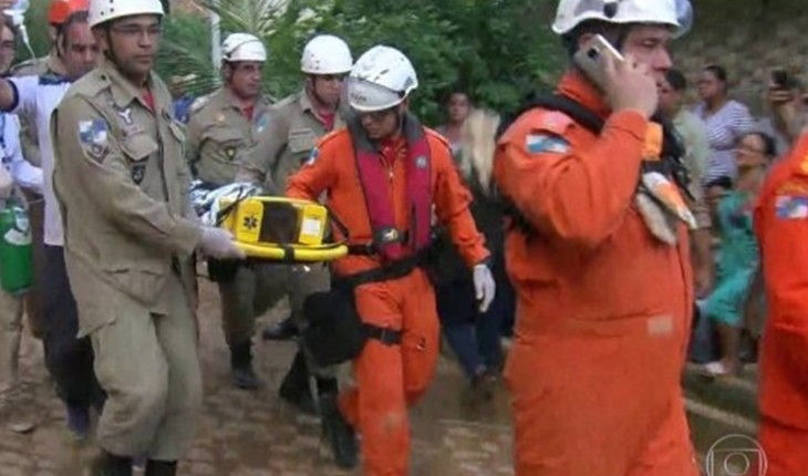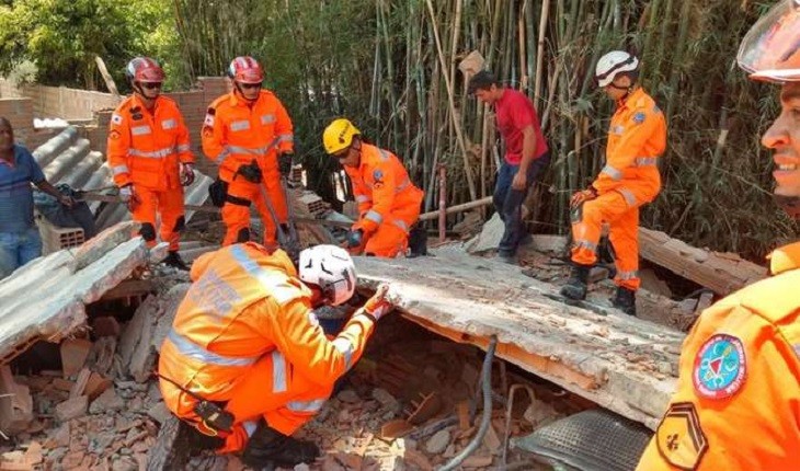 Bombeiros indicam possível explosão de gás; quatro resgatados e duas pessoas soterradas.