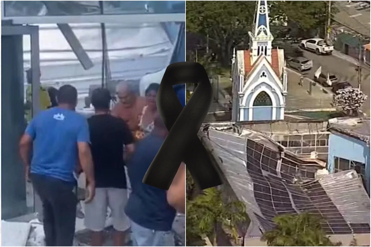 O teto da emissora desabou deixando funcionários feridos e uma moça soterrada entre os escombros.