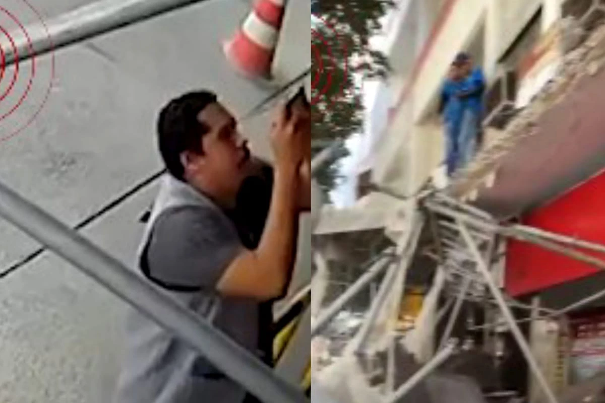 Homem aparece nas imagens segundos antes do colapso da estrutura; Defesa Civil interditou a área para avaliação técnica.