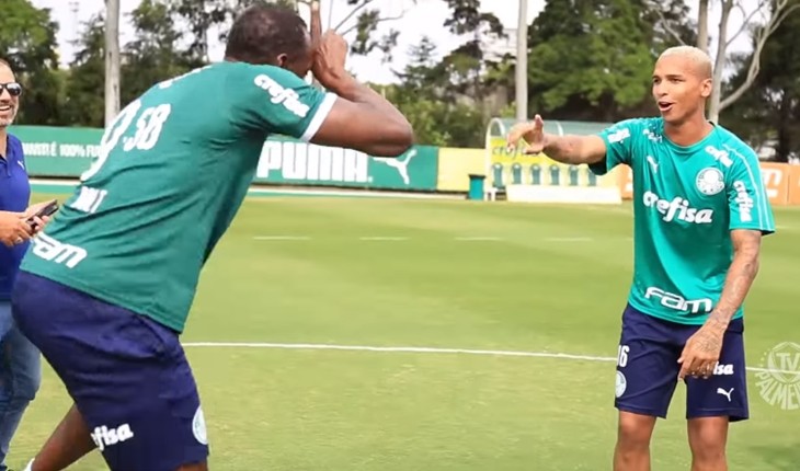 O atacante palmeirense saiu do sério e recusou dançar junto com o ex-velocista jamaicano.