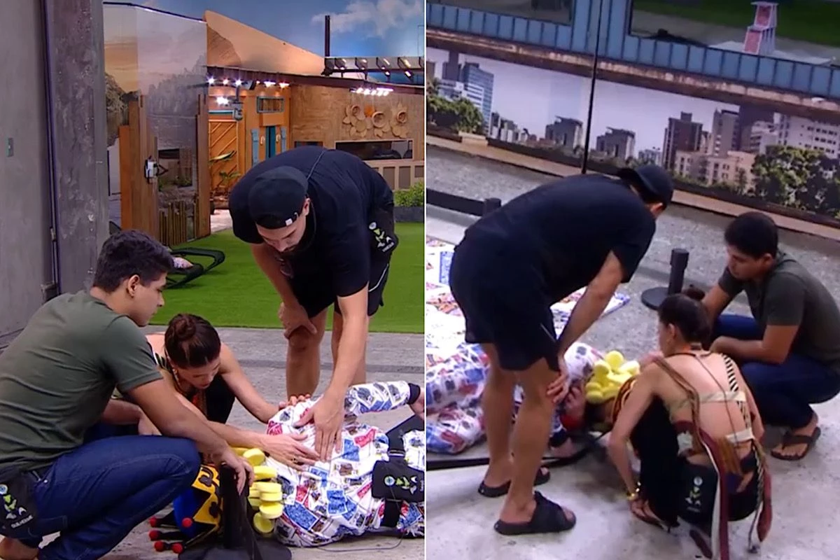 Cumprindo dinâmica imposta no reality, o ginasta sofreu incidente e recebeu ajuda dos aliados.