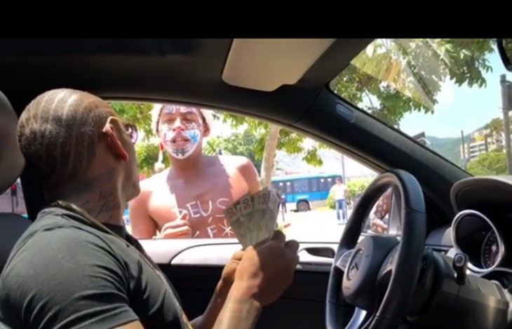 Funkeiro parou carrão e distribuiu dinheiro para os garotos que trabalhavam semáforo.