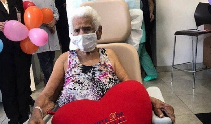 Nair Torres Santos, de 101 anos, recebeu alta após ficar oito dias internada vítima do coronavírus; a saída foi muito emocionante.