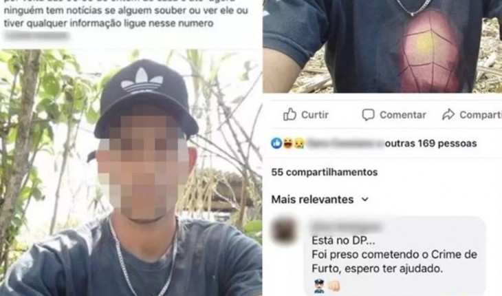 Cunhado posta foto de desaparecido e PM responde: ‘Está preso’ 19 de dezembro de 2019 Por Tati JesusO comentário do policial acabou com o mistério do desaparecimento do jovem.