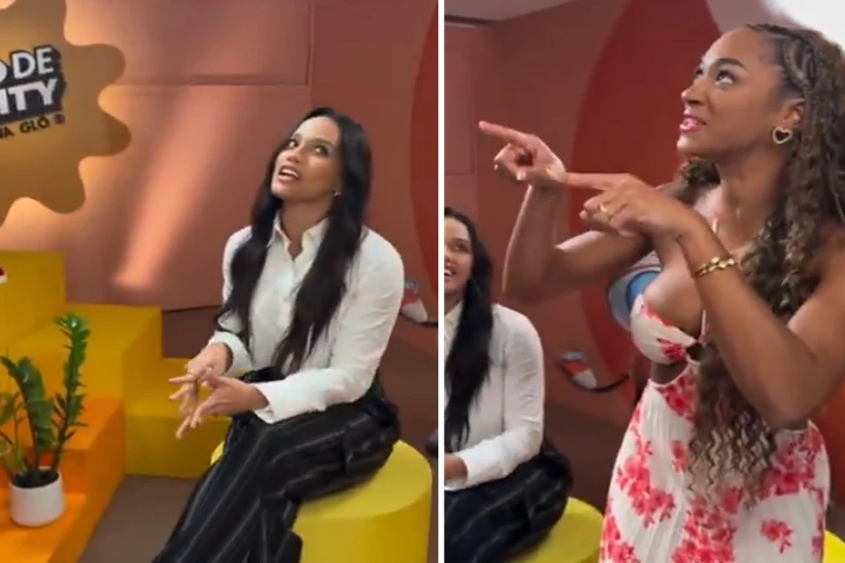Bastidores de gravação entre Eva e Aline mostra momento de alfinetadas entre ex-sisters do Big Brother Brasil 25.