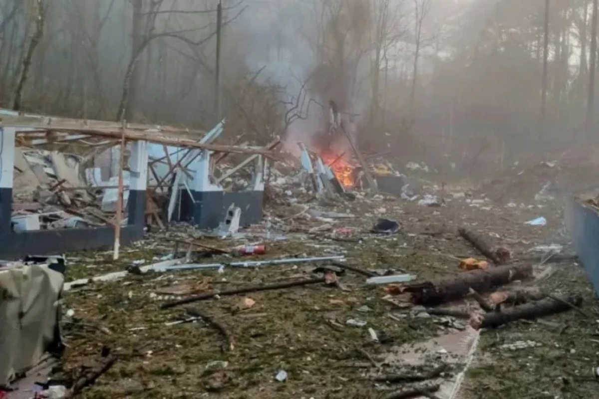 A explosão provocou uma densa coluna de fumaça visível a quilômetros de distância.