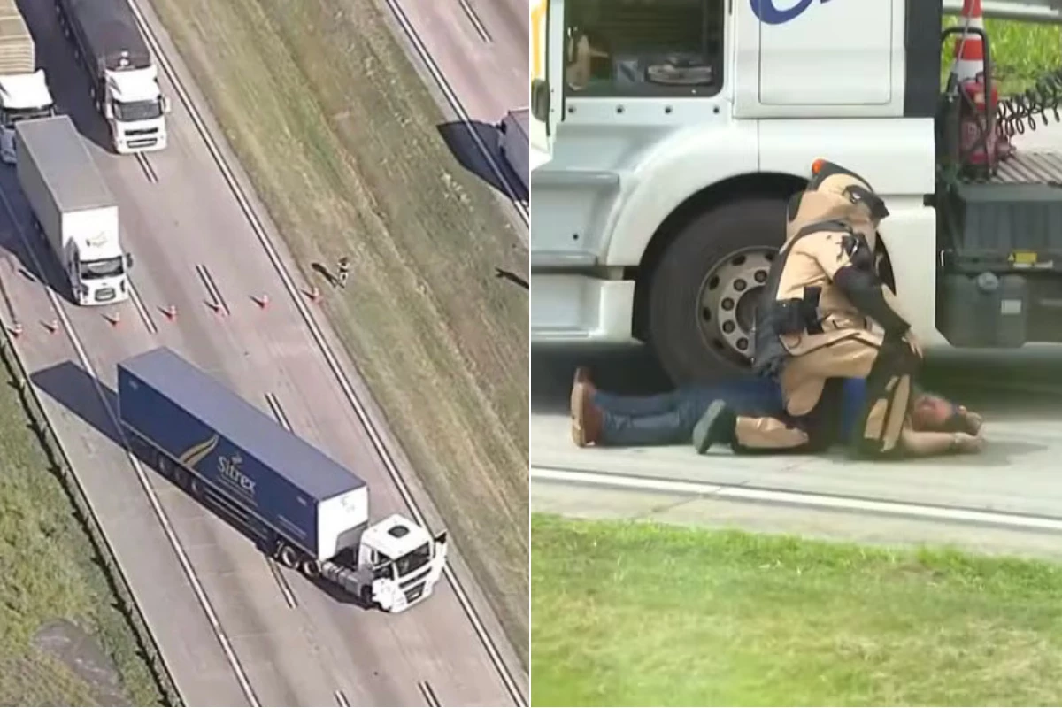 Vídeo mostra resgate tenso no Rodoanel: motorista desmaia ao sair de caminhão com suspeita de explosivos