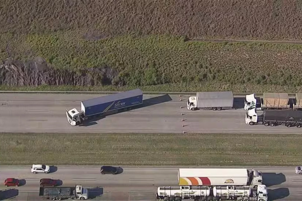 Gate retira caminhoneiro no km 44 em Itapecerica da Serra; congestionamento passa de 16 km e perícia avalia artefatos.