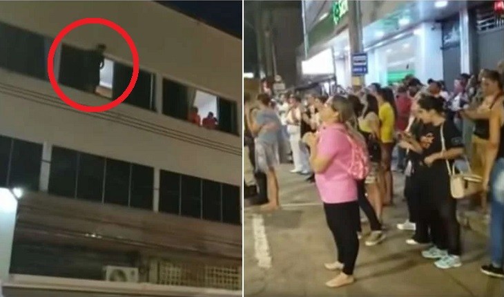Mulheres se aglomeraram na calçada e começaram a entoar um louvor gospel, conseguindo reverter a decisão do rapaz.