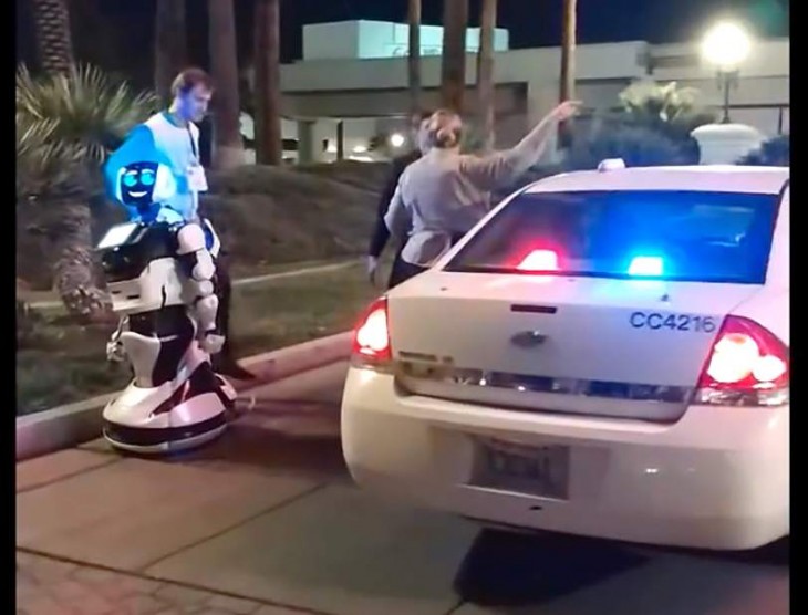 Um carrro sem motorista fabricado pela Tesla acabou atropelando e estragando um dos robôs que também participava da exposição.