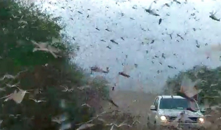 Vídeo mostra nuvem de gafanhotos que destruiu lavouras no Paraguai e chegou à Argentina.