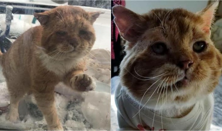 O animal foi abandonado no mais rigoroso inverno e precisou ser forte para sobreviver.