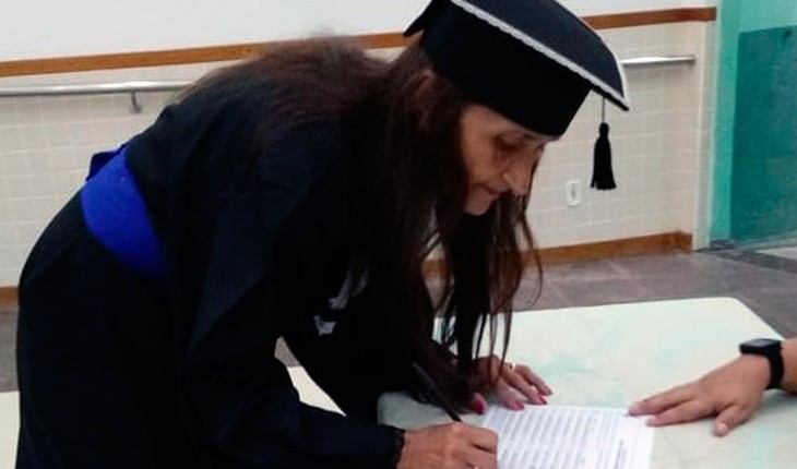 Dona Ivete de Souza se emocionou durante a colação de grau, e disse que sua história inspirou os jovens