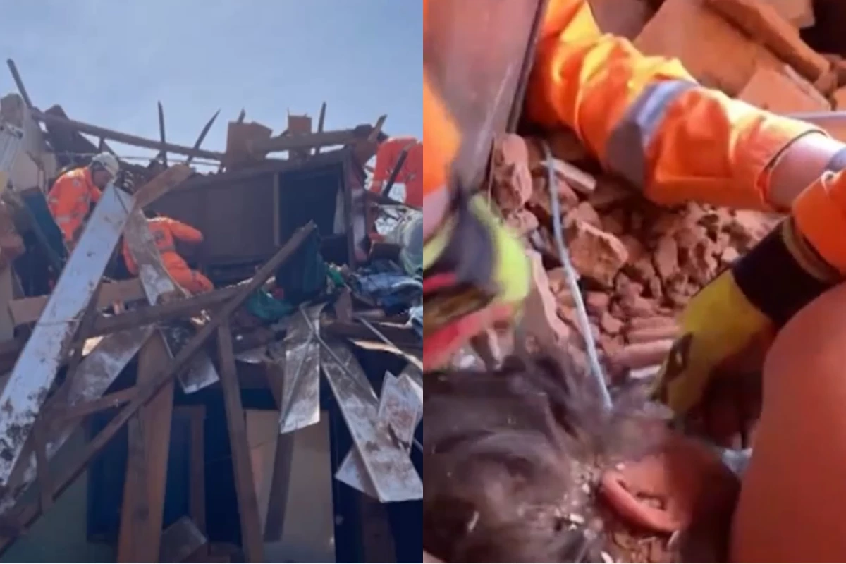 A vítima de 70 anos sobreviveu após ficar soterrada por cerca de 25 toneladas de escombros.